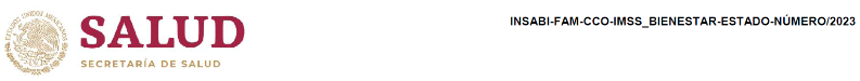| POR "EL INSABI" EL/LA DIRECTOR(LA) GENERAL (NOMBRE) | POR "LA ENTIDAD" (SEGÚN CORRESPONDA) EL/LA SECRETARIO(A) DE FINANZAS (O SU EQUIVALENTE) (NOMBRE) |