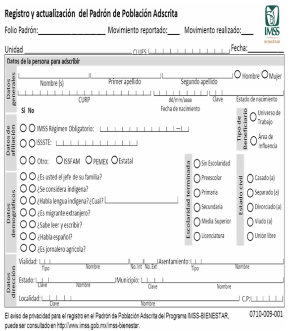 Anexo Único. Formato de Registro y Actualización del Padrón de Población Adscrita