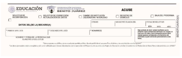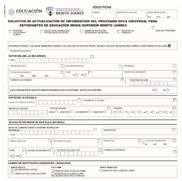 Anexo 3.- Solicitud de Actualización de Información del Programa Beca Universal para Estudiantes de Educación Media Superior Benito Juárez