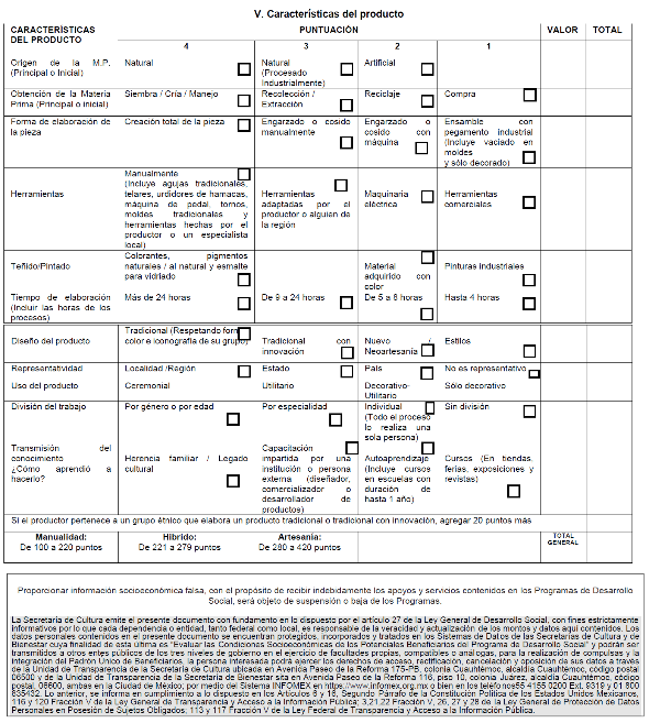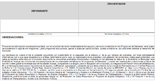 | Nombre completo y firma del artesano | | Nombre completo y firma (Servidor Público) |