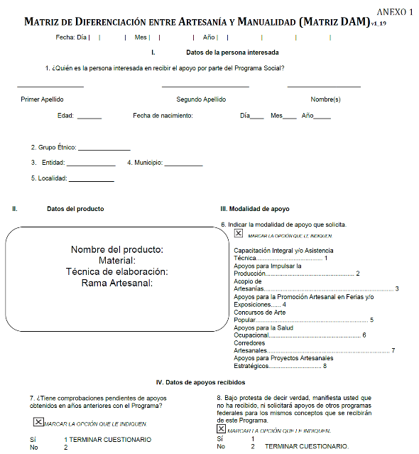 Anexo 1 Matriz de Diferenciación entre Artesanía y Manualidad (MATRIZ DAM).