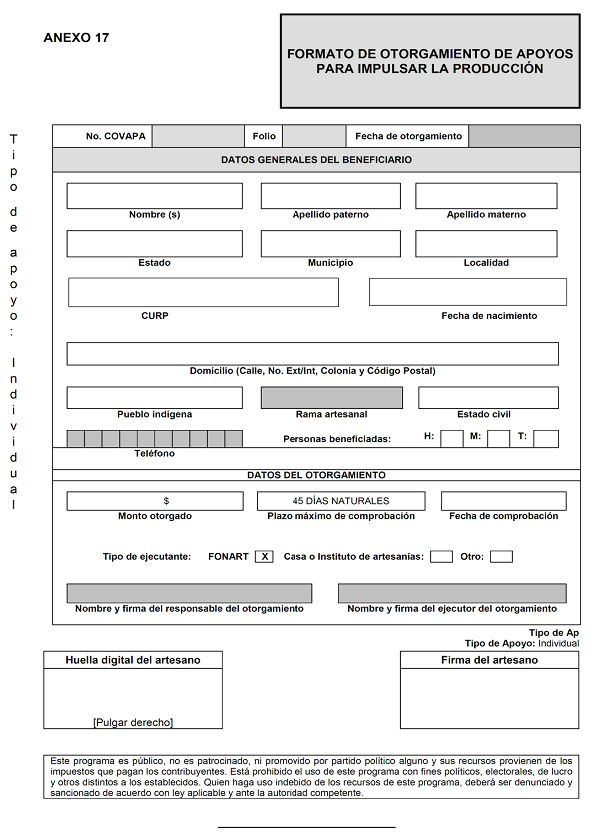 Anexo 17 Formato de Otorgamiento de Apoyos para Impulsar la Producción.