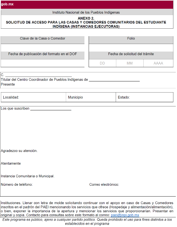 Este Programa complementa las acciones que instrumentan otros programas sociales de la Administración Pública Federal, y se enfoca a beneficiar a la población indígena y afromexicana que no cuenta con servicios educativos en sus comunidades y que se ubica en las comunidades o localidades cercanas a las Casas y Comedores Escolares de la Niñez Indígena; Casas y Comedores Comunitarios del Estudiante Indígena y Casas y Comedores Universitarios Indígenas. Para la operación de las Casas y Comedores Escolares de la Niñez Indígena, el Instituto se coordina con la Secretaría de Educación Pública (SEP) a través de las instancias correspondientes en cada entidad federativa.