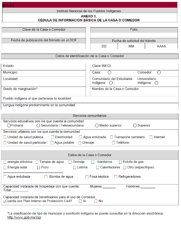 c) Casa Comunitaria del Estudiante Indígena: En estas Casas se brinda hospedaje, alimentación y actividades complementarias a los estudiantes indígenas. El hospedaje es proporcionado y garantizado por la instancia comunitaria que administra la Casa. El INPI aporta los insumos para la preparación de alimentos, artículos de higiene personal y actividades complementarias para los beneficiarios. Estos espacios son administrados y operados por instancias comunitarias y, en algunos casos debidamente justificados, instancias municipales y estatales;