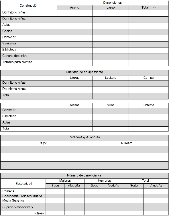 | Datos de la Casa o Comedor | | Beneficiarios |