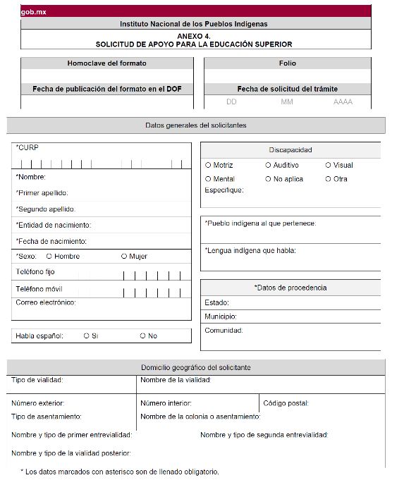 | Fecha de publicación del formato en el DOF | | Fecha de solicitud del trámite |