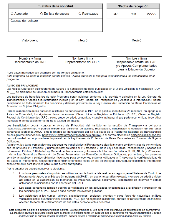 Al margen un sello con el Escudo Nacional, que dice: Estados Unidos Mexicanos.- GOBIERNO DE MÉXICO.- Instituto Nacional de los Pueblos Indígenas.