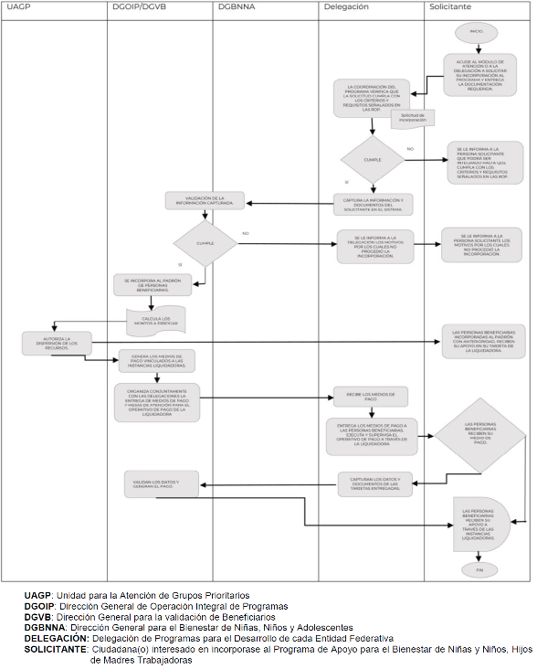 Flujograma de Incorporación al Programa de Apoyo para el Bienestar de las Niñas y Niños, Hijos de