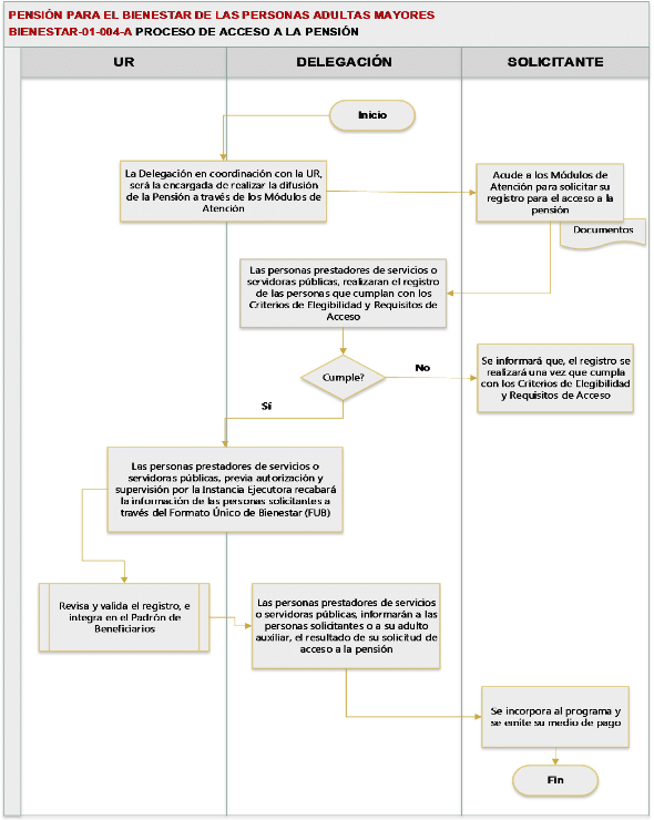 | Todas las personas adultas mayores de 65 años o más de edad. | 1. Tener nacionalidad mexicana por nacimiento o naturalización. 2. Residir en la República Mexicana. |