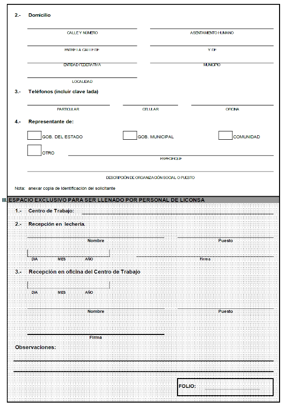 Ficha socioeconómica.- Cuestionario que se aplica a los Actores Sociales y Comunitarios, mediante la cual se determina la factibilidad de incorporarse al Programa de Abasto Social de Leche.