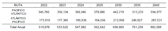 Los volúmenes objetivo-señalados en la tabla anterior son el resultado del análisis de los tráficos y líneas navieras que obtendrían mayores beneficios utilizar la Plataforma Logística. Considerando que las líneas navieras obtienen una opción eficiente para la transferencia interoceánica.