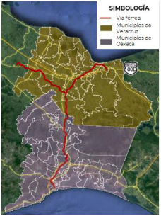 Mapa de la delimitación municipal del Istmo de Tehuantepec