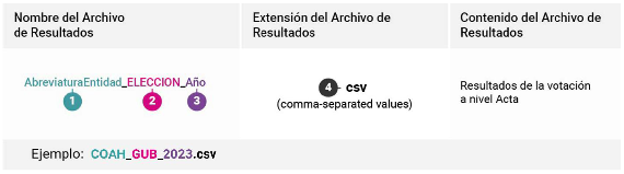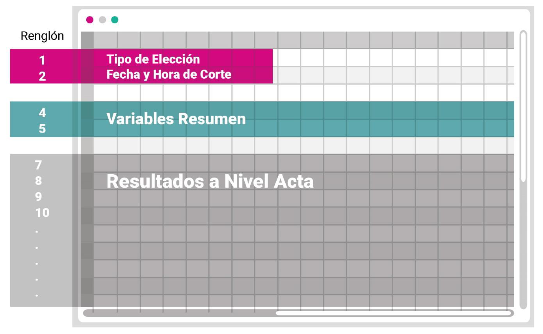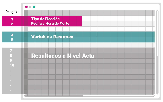 | Anexo 18.5: | Anexo 18, Formato 18.5 del Reglamento de Elecciones del Instituto Nacional Electoral, correspondiente a la Estructura de los archivos CSV para el tratamiento de la base de datos relativa al Programa de Resultados Electorales Preliminares. |