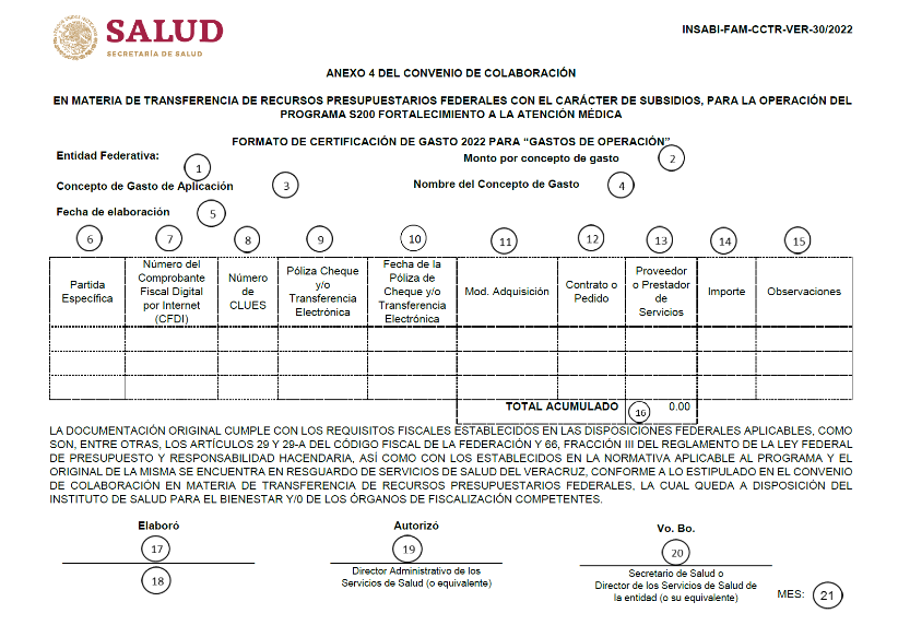 | 9 | Póliza Cheque y/o Transferencia Electrónica del pago efectuado | | 20 | Titular de la Secretaría de Salud Estatal o Titular de los Servicios de Salud de la Entidad Federativa (o su equivalente) |