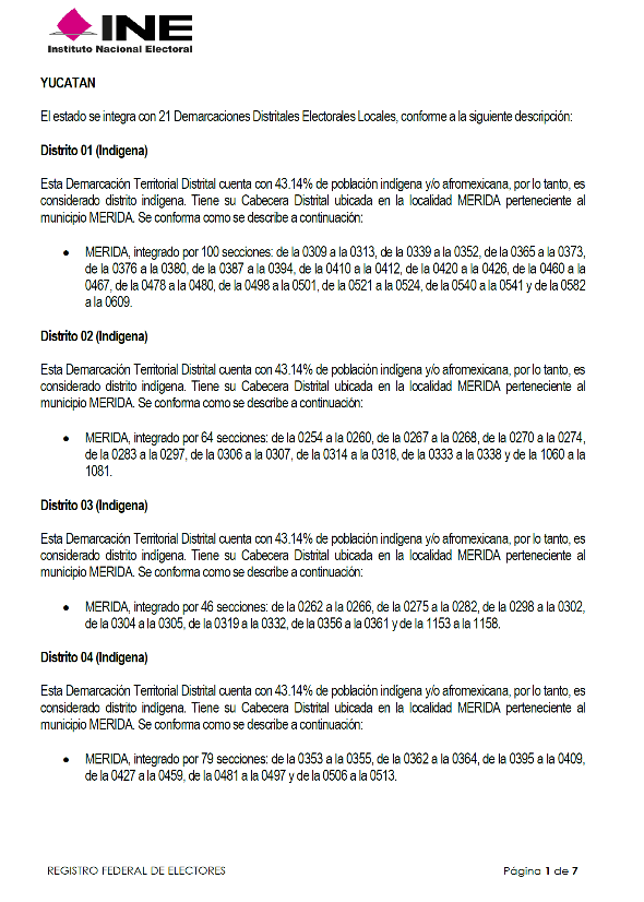 ACUERDO del Consejo General del Instituto Nacional Electoral por el que se aprueba la demarcación territorial de los distritos electorales uninominales locales en que se divide el Estado de Yucatán y sus respectivas cabeceras distritales, a propuesta de la Junta General Ejecutiva.
