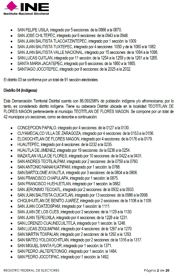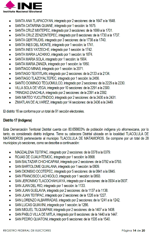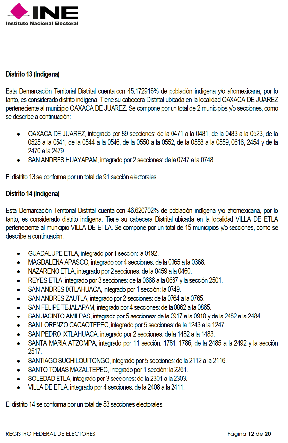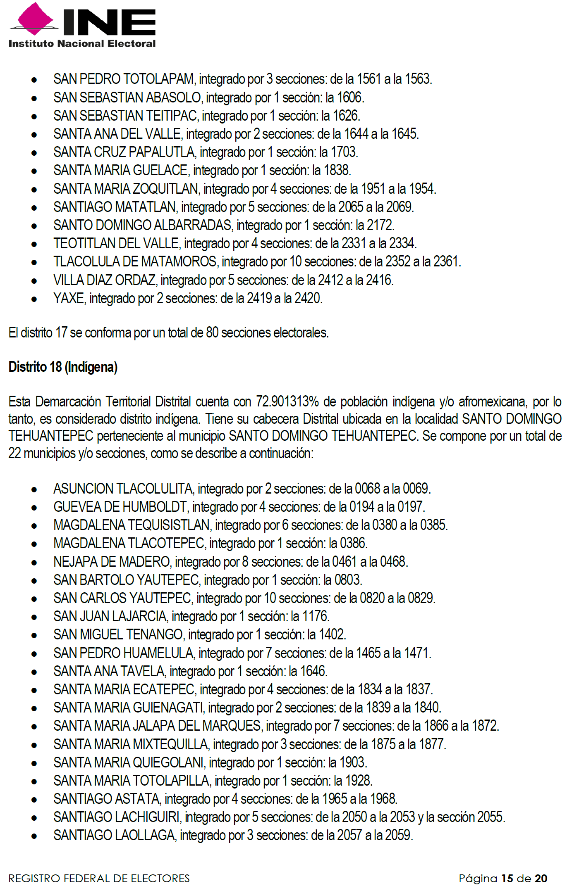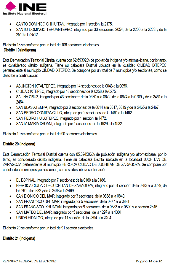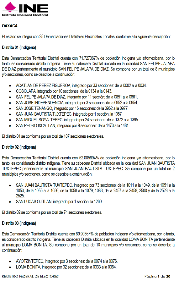 ACUERDO DEL CONSEJO GENERAL DEL INSTITUTO NACIONAL ELECTORAL POR EL QUE SE APRUEBA LA DEMARCACIÓN TERRITORIAL DE LOS DISTRITOS ELECTORALES UNINOMINALES LOCALES EN QUE SE DIVIDE EL ESTADO DE OAXACA Y SUS RESPECTIVAS CABECERAS DISTRITALES, A PROPUESTA DE LA JUNTA GENERAL EJECUTIVA