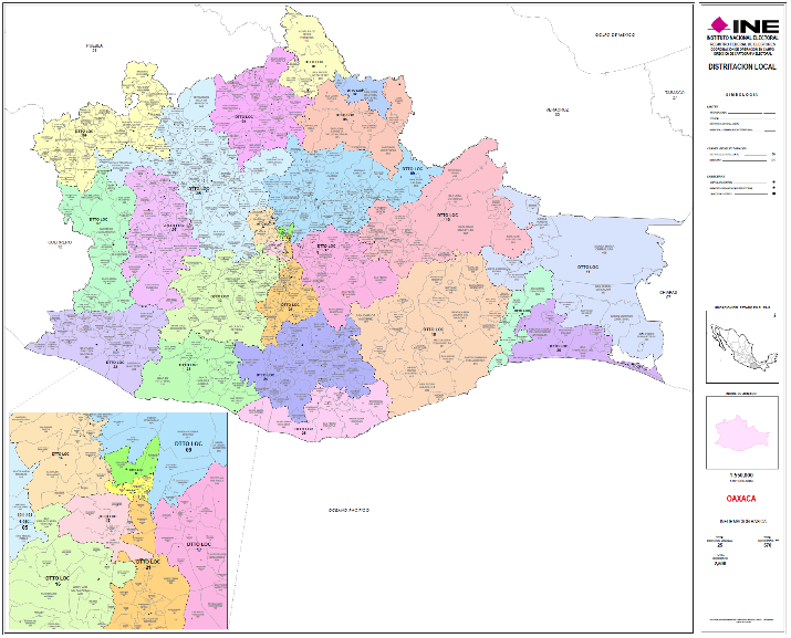 ACUERDO del Consejo General del Instituto Nacional Electoral por el que se aprueba la demarcación territorial de los distritos electorales uninominales locales en que se divide el Estado de Oaxaca y sus respectivas cabeceras distritales, a propuesta de la Junta General Ejecutiva.