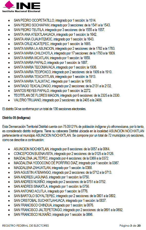 36. Publicación del tercer escenario de distritación local. El 28 de octubre de 2022, se publicó el tercer escenario de distritación local para el estado de Oaxaca.