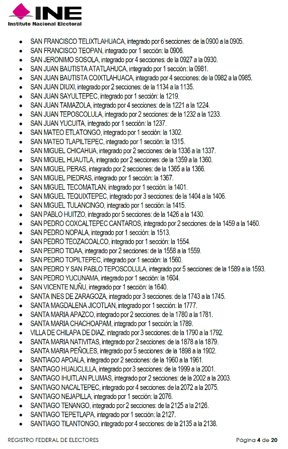 | ENTIDAD | MUNICIPIO | SECCIÓN ORIGEN | SECCIONES NUEVAS | RANGO |