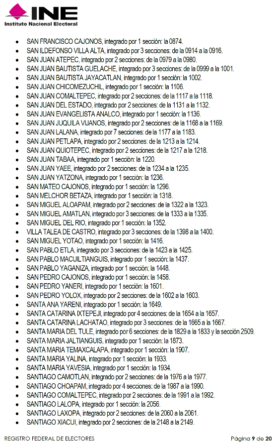 | 20 | Oaxaca | 392 | Santa Lucía del Camino | 1751 | 2 | 2528-2529 |