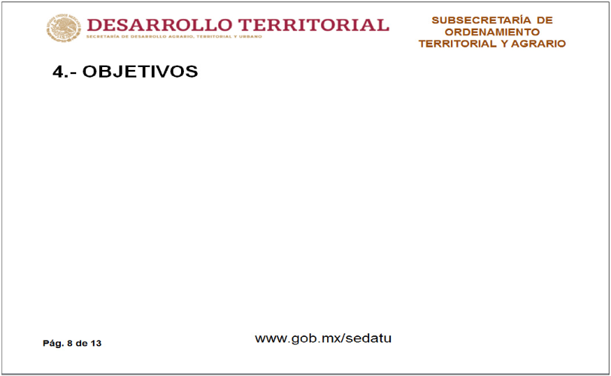 La planeación del ordenamiento territorial está enfocada en implementar una estrategia de sostenibilidad del uso del suelo, donde se reflejen valores sociales, culturales, ambientales y económicos, que trasciendan a los ámbitos rural y urbano, siempre en beneficio de las y los ciudadanos; los tres órdenes de gobierno tienen la obligación de involucrarse en la recuperación y modernización de los espacios públicos y el respeto al derecho de propiedad para crear territorios de paz enfocados en adoptar y satisfacer las necesidades individuales que dan como resultado el bienestar social.