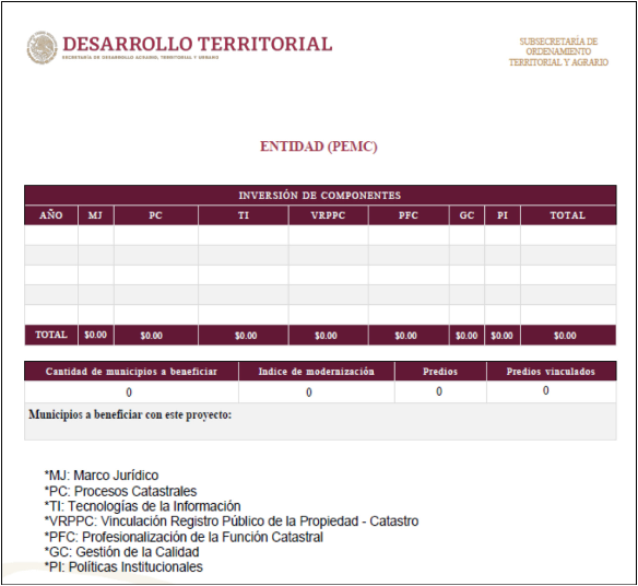 El Programa de Modernización de los Registros Públicos de la Propiedad y Catastros tiene entre una de sus finalidades la de generar interés y una oportunidad de transformación a la modernización en los gobiernos estatales que presentan menor avance, a efecto de que adopten el Modelo Integral de Registro Público de la Propiedad y el Modelo Óptimo de Catastro, para que la inversión conjunta para el desarrollo de los proyectos ejecutivos refleje un mayor avance.