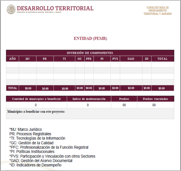 En ese sentido el Programa de Modernización de los Registros Públicos de la Propiedad y Catastros realiza la implementación de modelos basados en la eficacia de sus operaciones a través de la modernización de instituciones registrales y catastrales transparentes, eficientes y eficaces mediante el desarrollo de una heterogeneidad administrativa, fiscal y técnica, utilización de sistemas informáticos que permitan reducir los tiempos de respuesta en sus procesos, la interoperabilidad y vinculación real de la información, así como la profesionalización de las y los servidores públicos involucrados, regenerando la ética de cada uno mediante el ejercicio austero, honesto, transparente, incluyente, respetuoso de las libertades y de los derechos humanos, sensible a las necesidades de los más vulnerables en beneficio de un ordenamiento territorial incluyente que garantice certeza jurídica patrimonial, además de erradicar la corrupción en beneficio de las y los ciudadanos, contribuyendo a establecer un sistema territorial integrado, ordenado, incluyente, sostenible y seguro centrado en los derechos humanos y colectivos de las personas, pueblos y comunidades.