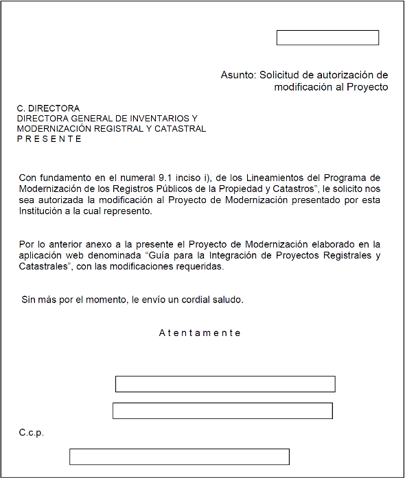 XIII. De ser autorizados los cambios, las INSTITUCIONES BENEFICIARIAS deberán actualizar el PROYECTO en la "Guía para la Integración de Proyectos Registrales y Catastrales", utilizando la E. FIRMA y remitiéndolo a la DGIMRC, a través de la VENTANILLA ÚNICA;