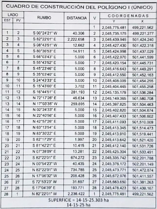 18. Que el comisionado técnico del RAN y el comisionado agrario de la Sedatu rindieron el "informe de comisión de Trabajos Técnicos e Informativos de Expropiación", de 9 de diciembre de 2022, en el que se señala que la superficie real a expropiar al ejido "20 de Noviembre", municipio de Calakmul, estado de Campeche, es de 14-15-25 hectáreas de terrenos de temporal, de las cuales 1-62-27 hectáreas son de uso común, y 12-52-98 hectáreas, de uso parcelado, lo cual se describe en el siguiente plano y cuadro de construcción: