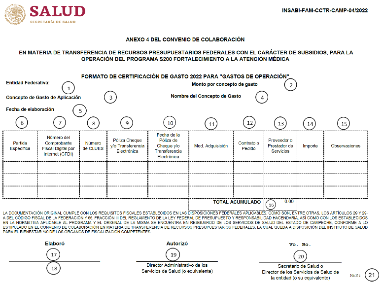 | 21101 | MATERIALES Y ÚTILES DE OFICINA | Asignaciones destinadas a la adquisición de materiales y artículos diversos de oficina, para el uso en las unidades médicas móviles federales, tales como: artículos papelería, libretas, carpetas, útiles de escritorio como engrapadoras, perforadoras, sacapuntas, entre otros. |