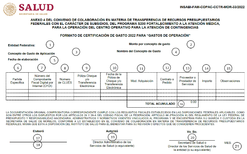 NOTA: ES IMPORTANTE MENCIONAR QUE DEBERÁ EMITIRSE UN FORMATO DE CERTIFICACIÓN DE GASTO POR CADA CONCEPTO DE GASTO COMPROBADO (EJERCIDO), ASÍ COMO PARA EL CASO DE LOS RENDIMIENTOS FINANCIEROS, DE ACUERDO AL EJERCICIO DE LOS RECURSOS ASIGNADOS A LA ENTIDAD FEDERATIVA.