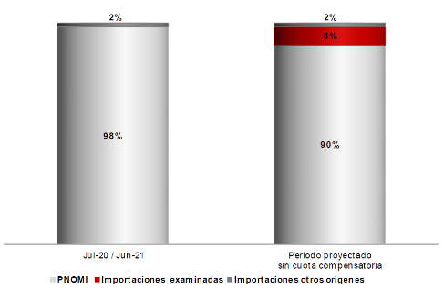 137. En relación con el mercado, la Secretaría observó que la PNOMI de la rama de producción nacional aumentó su participación en 10 puntos porcentuales en el CNA durante el periodo analizado, al pasar de 88% en el periodo julio de 2016-junio de 2017 al 91% en el periodo julio de 2017-junio de 2018, 98% en el periodo julio de 2018-junio de 2019, 97% en el periodo julio de 2019-junio de 2020 y 98% en el periodo de examen.