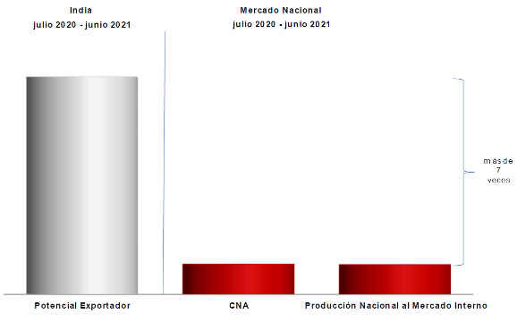 f. La industria india dispone de un potencial de exportación de ferrosilicomanganeso considerablemente mayor al mercado nacional. Dicho potencial exportador en el periodo de examen fue equivalente a más de 7 veces el tamaño del CNA y de la producción nacional orientada al mercado interno, respectivamente.