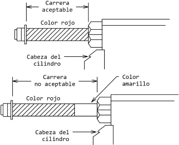 | Cilindro | Montaje inicial y/o ajuste requerido +/- 1/8 in | Carrera Nominal. Inspección Inicial en Terminal, FRA Clase I | No-Efectiva la Carrera del Pistón cuando excede: |