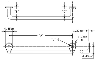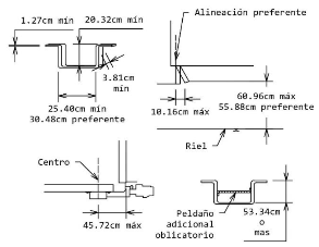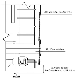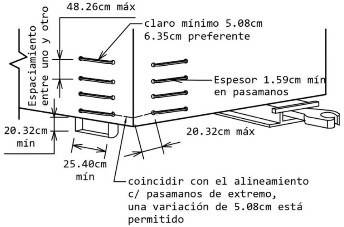 2.7.1.11.4.3. El barandal/pasamanos debe de estar localizado a no más de 15.24 cm (6 in) del borde interior de la plataforma.