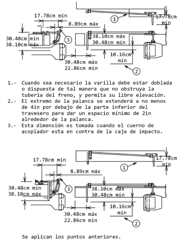 2.7.1.11.4.4. Instalación. Deben estar sujetas en el centro del carro y en los extremos extendiéndose hacia abajo en los extremos y sujetándose a la plataforma.