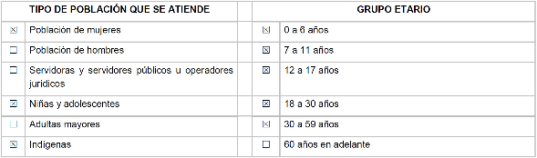 | Atención. Son las acciones destinadas a la atención de las mujeres y las niñas y las adolescentes, tendientes a disminuir las condiciones de riesgo en el que se encuentran, así como garantizar espacios libres de violencia contra las mujeres, las niñas y la protección de las víctimas. |