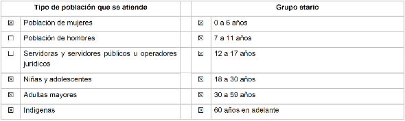 | Atención: Son las acciones destinadas a la atención de las mujeres y las niñas y las adolescentes tendientes a disminuir las condiciones de riesgo en el que se encuentran así como garantizar espacios libres de violencia contra las mujeres las niñas y la protección de las víctimas. |