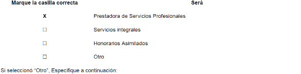 | Otro | No Aplica | Especifique en la Siguiente Sección |