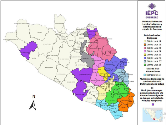 Adicionalmente, mediante Decreto 460, el Congreso del Estado de Guerrero adicionó y reformó la Ley 483. En concreto, los artículos 13 bis y 272 bis adicionados a dicho ordenamiento previeron la postulación de candidaturas a diputaciones de mayoría relativa e integrantes de los ayuntamientos con integrantes de origen indígena o afromexicano en los municipios y distritos electorales donde dichos grupos fueran igual o mayor al 40%. Asimismo, se establecieron los elementos que debían reunir las constancias que presentaran los partidos políticos o coaliciones para dar cumplimiento a la autoadscripción calificada.