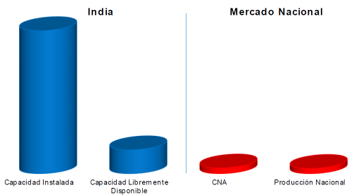 e. el potencial exportador de India (capacidad instalada menos consumo) fue mayor a la producción nacional y al tamaño del mercado mexicano, en más de 13 veces, en el periodo investigado.