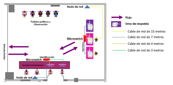| | Lectores de códigos · La AE verificará la situación presentada y comprobará que el lector se encuentra conectado correctamente al puerto USB del dispositivo. · En caso de que el lector no funcione, se desconectará y conectará nuevamente. En caso de que el lector no tenga cable entre el lector y la base, que se encuentre sincronizado, escaneando el código QR que se encuentra en la parte posterior de la base. · Si después de lo anterior, continúa sin funcionar, la búsqueda de la persona ciudadana se deberá realizar manualmente. En todo momento, la AE deberá informar a la persona presidenta del MRV, así como al Grupo de Seguimiento, sobre la situación y solución a la misma. |