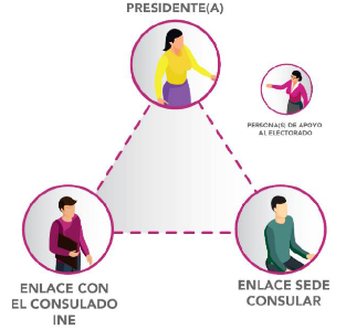 · Las AE, enlaces del INE y enlaces de las sedes consulares, así como personas invitadas del INE, deberán contar con los distintivos/gafetes que para efectos de identificación y permanencia en los MRV les proporcione el INE.