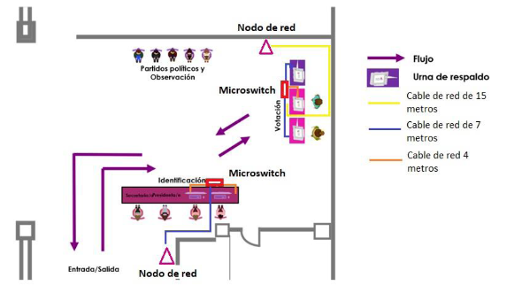 | | Urna Electrónica (equipo de votación) · La AE verificará la situación y comprobará lo siguiente: a) Que el dispositivo se encuentre correctamente conectado al suministro de energía eléctrica. b) Que el dispositivo cuente con conexión a la red. c) Que el elector puede ingresar al Sistema de Votación Electrónica por Internet mediante el código QR que se le entregó. d) Si verificado lo anterior la situación persiste, apoyar al elector para ingresar al sistema manualmente colocando sus credenciales de acceso que le fueron entregadas. e) Si la falla ocurre una vez autenticado el elector, pero previo a la emisión de su voto, se deberá cerrar sesión e iniciar el procedimiento nuevamente. f) Si al intentar ingresar nuevamente, el sistema indica al elector que ya hay una sesión iniciada, la AE notificará la situación a la persona enlace del INE, quien a su vez deberá notificarlo al Grupo de Seguimiento quien realizará las acciones que correspondan para solucionar la situación. g) Si verificado lo anterior la situación persiste, se deberá reiniciar el equipo de votación. h) Si reiniciado el equipo de votación continuara la situación, se deberá apagar y dejar sin utilización, previa notificación y acuerdo con la persona presidenta del MRV, y se continuará con la urna de respaldo que ya se encontrará instalada. i) Si la falla ocurre una vez emitido el voto, con auxilio de la AE, la persona electora pasará a otro equipo de votación para verificar que su voto ha sido emitido; en caso contrario, podrá continuar el proceso hasta la emisión de su sufragio. · La AE notificará la situación a la persona enlace INE, quien a su vez deberá notificarlo al Grupo de Seguimiento. |