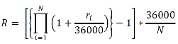 R = Tasa de interés anual devengada del Valor Gubernamental ASG correspondiente, expresada en términos porcentuales anuales y con redondeo a centésimas, calculada de acuerdo con la fórmula siguiente: