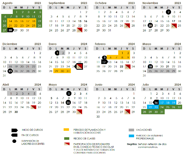 ARTÍCULO SEGUNDO.- Se establece el calendario escolar de ciento noventa y cinco días para el ciclo lectivo 2023-2024, aplicable en toda la República para las escuelas de educación normal y demás para la formación de maestras y maestros de educación básica, públicas y particulares incorporadas al Sistema Educativo Nacional.