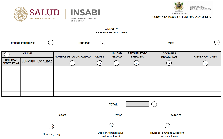 ANEXO 7 DEL CONVENIO DE COLABORACIÓN EN MATERIA DE TRANSFERENCIA DE RECURSOS PRESUPUESTARIOS FEDERALES CON EL CARÁCTER DE SUBSIDIOS PARA APOYAR LAS ACCIONES DEL PROGRAMA FORTALECIMIENTO A LA ATENCIÓN MÉDICA S200 PARA EL EJERCICIO FISCAL 2022, CON CARGO A LOS RECURSOS DEL PROGRAMA PRESUPUESTARIO E023 "ATENCIÓN A LA SALUD" PARA EL EJERCICIO FISCAL 2022 (PROGRAMA E023), CELEBRADO ENTRE EL INSTITUTO DE SALUD PARA EL BIENESTAR Y EL ESTADO DE QUERÉTARO, EL 10 DE OCTUBRE DE 2022.