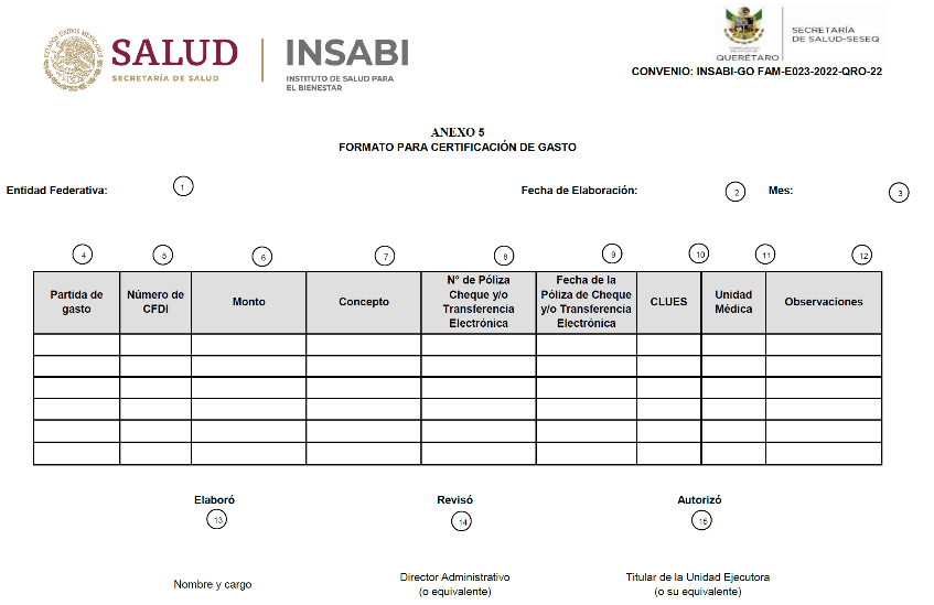 ANEXO 5 DEL CONVENIO DE COLABORACIÓN EN MATERIA DE TRANSFERENCIA DE RECURSOS PRESUPUESTARIOS FEDERALES CON EL CARÁCTER DE SUBSIDIOS PARA APOYAR LAS ACCIONES DEL PROGRAMA FORTALECIMIENTO A LA ATENCIÓN MÉDICA S200 PARA EL EJERCICIO FISCAL 2022, CON CARGO A LOS RECURSOS DEL PROGRAMA PRESUPUESTARIO E023 "ATENCIÓN A LA SALUD" PARA EL EJERCICIO FISCAL 2022 (PROGRAMA E023), CELEBRADO ENTRE EL INSTITUTO DE SALUD PARA EL BIENESTAR Y EL ESTADO DE QUERÉTARO, EL 10 DE OCTUBRE DE 2022.
