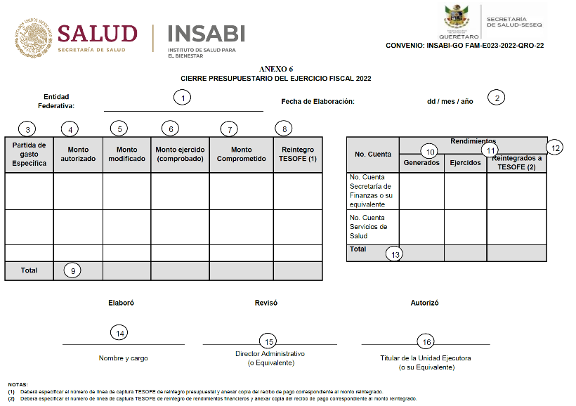 VII. Rendir al "INSABI", por conducto de la Unidad Ejecutora, los informes (i) del ejercicio del gasto de manera mensual, a más tardar los días quince (15) de octubre, 15 de noviembre y 15 de diciembre de 2022, y (ii) de cierre del ejercicio, dentro de los (30) días siguientes a que ocurra el mismo, conforme a los Anexos 5 y 6 de este Convenio de Colaboración, respectivamente.