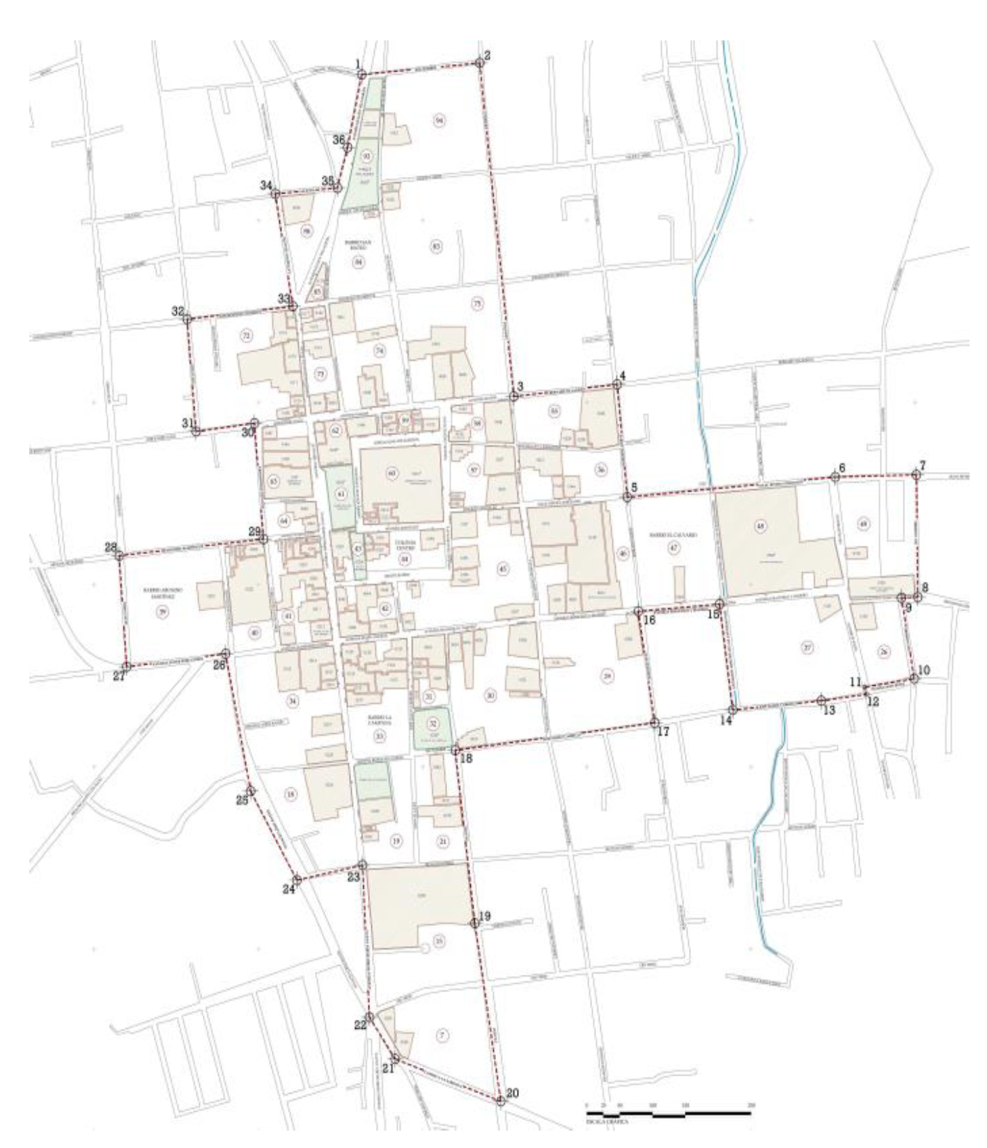 Que el asentamiento presenta una traza ortogonal, alterada en menor medida por la unión de las vialidades con los antiguos caminos comerciales y la presencia de arroyos que cruzan de sur a norte a la población;